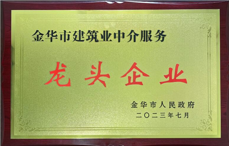 2023年2月,金华市住房和城乡建设局根据市政府《金华市建筑业改革创新高质量发展实施意见》(金政办发〔2021〕81号)文件精神,开展了2022年度金华市建筑业龙头、骨干企业评选工作。我司参加评选,经市人民政府批准,获得“金华市建筑业中介服务龙头企业”荣誉称号。